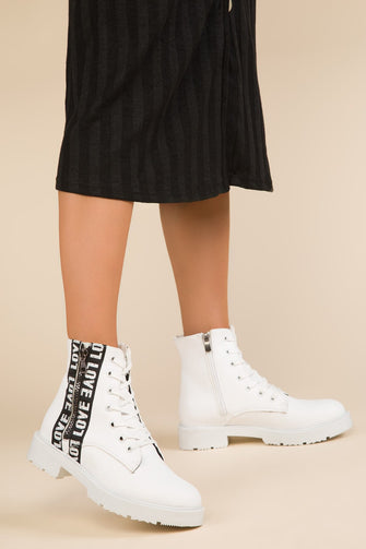 Women Fashion Ankle Boots High Quality Female Letter Pattern Lace-up Shoes Casual Zipper Round Toe Boot Black