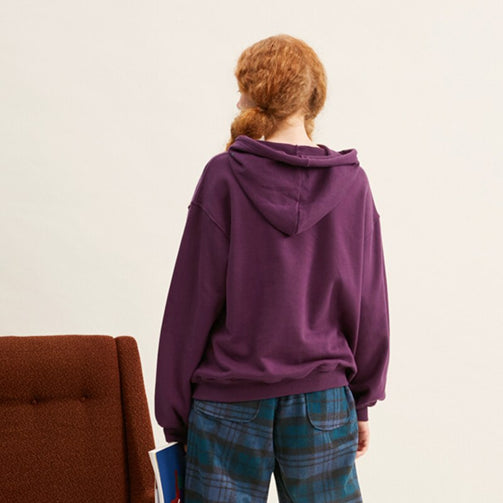 Spring New Women Pullover Sweatshirt Cotton Purple Letter Embroidery Printed Ladies Loose Jumper Tops Femmer Hoodies