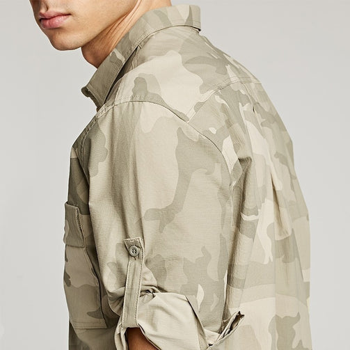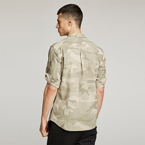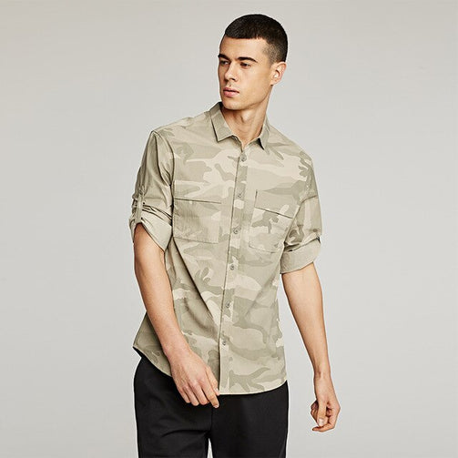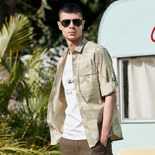 Summer Men Camouflage Shirt - Three Quarter Sleeve; Slim Fit