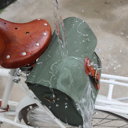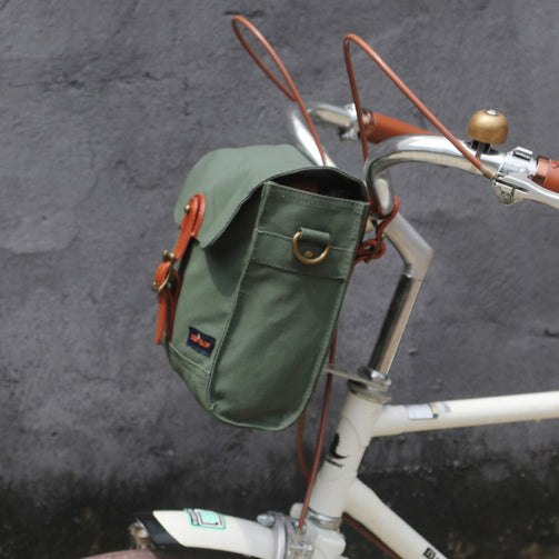 Bicycle Handlebar Bag Pack Front Tube Basket Pannier Messenger Bag Outdoor Accessories Green Waxed Waterproof Canvas