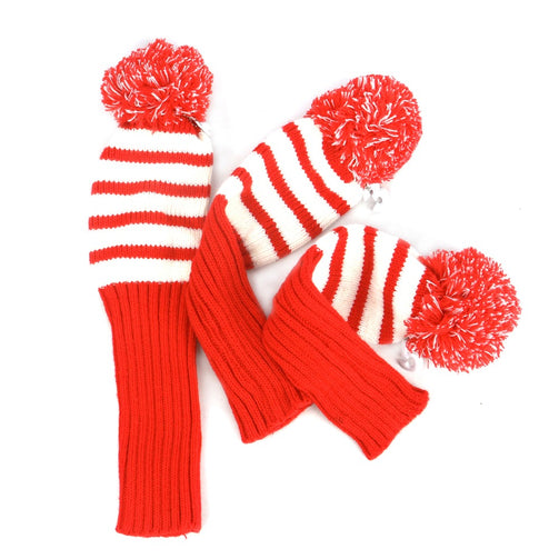 Red Knitting Golf Clubs Carrier Padded Clubs Head Cover Protection Storage Golf Gun Bag Holder
