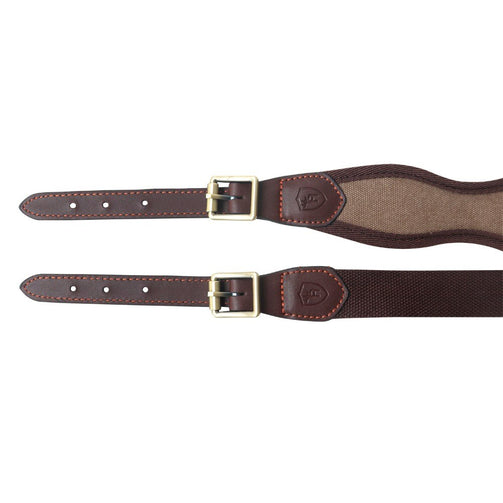- Made from high quality genuine leather & canvas - Maximum length can be adjusted to 110cm - Extremely durable and comfortable - With two cartridges holder design - Beautifully stitched, brass buckle and vintage classic design - Easily attaches to any standard sling swivels - Designed with adjustable strap |