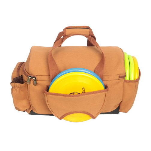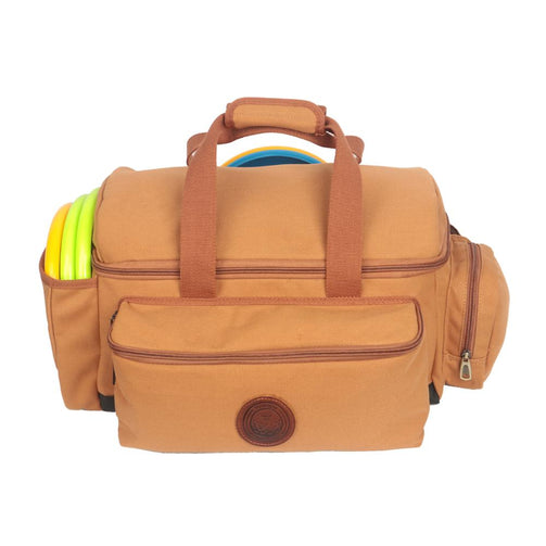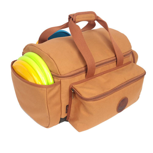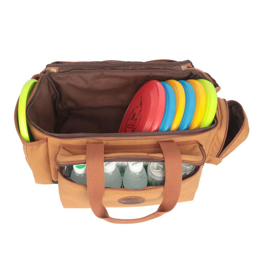 - Vintage design with traditional features - Hold 18 discs and drinks etc. - Zippered insulated cooler compartment comfortably holds drinks and cans - Two zippered pockets to hold your valuables, disc golf accessories, and snacks - Package do not include discs |