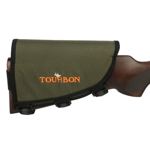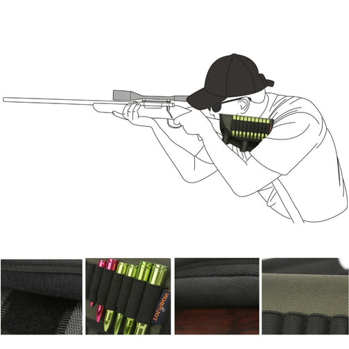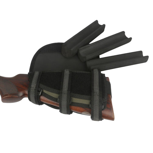 - 600D Polyester and Neoprene - 10 Round Rifle Cartridge Holder - 3 Size EVA Pad for Hunter to Adjust height - Adjustable velcro straps custom fit virtually any size stock - Use for left hand |