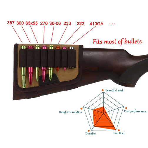 Tactical Hunting Shooting Rifle Gun Buttstock Cheek Rest 8 Rounds Cartridges Ammo Holder Canvas Gun Accessories