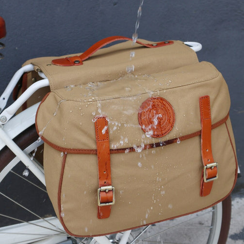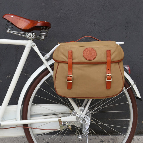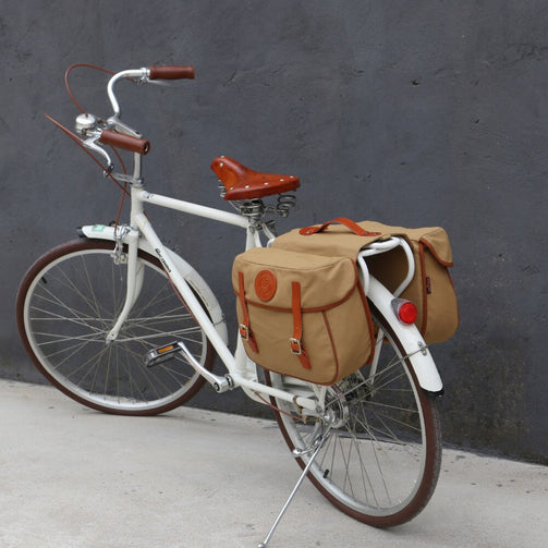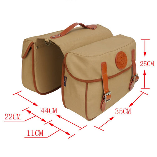Vintage Bicycle Pannier Bag Rear Rack Trunk Bike Backseat Luggage Double Roll-up Bag Retro Waxed Waterproof Canvas Khaki