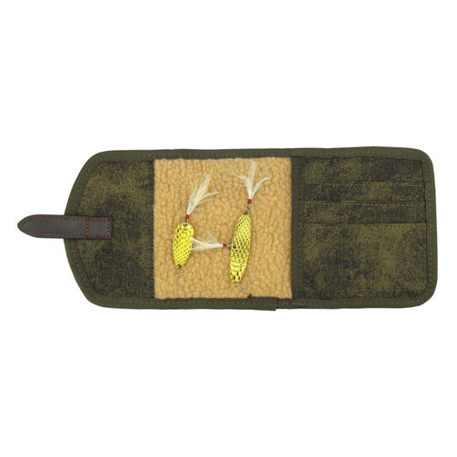 Vintage Fishing Accessories Green Canvas Leather Fishing Fly Wallet Small Case Storage Pouch