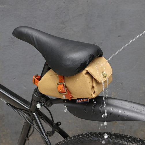 Vintage Portable Bicycle Bike Seat Tail Saddle Bag Khaki Canvas Leather Key Phone Pouch Cycling Bike Accessories