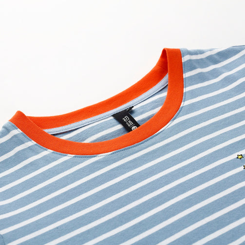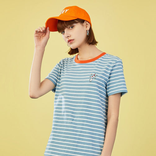 SummerWomen T-Shirt (Casual Stripe Print Cartoon Logo Round Neck Short Sleeve)
