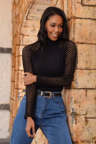 Female Black-Throated Handles Honeycomb Knit Blouse