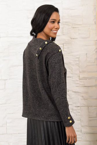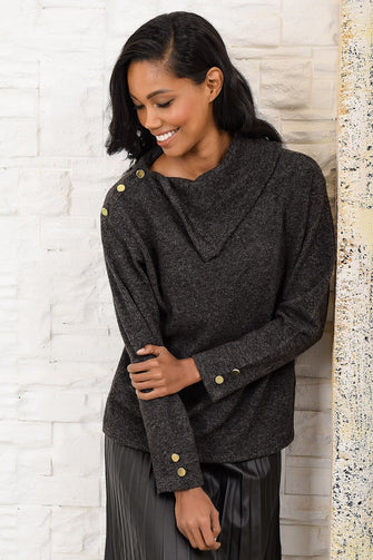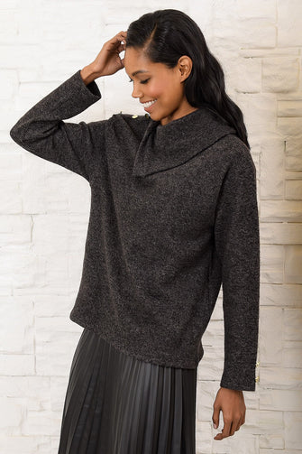 Women Anthracite Handkerchief Collar Button Detail Sweater