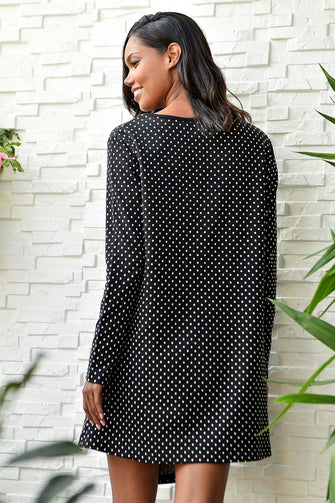 Women Black Bicycle Neck Polka Dot Dress With Pockets