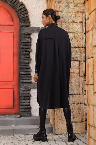 Women Black Double Pocket With Lid Snaps Long Shirt