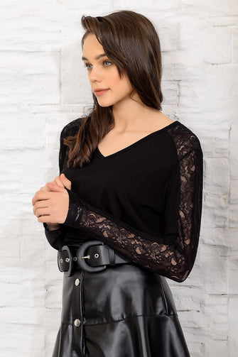 Women Black V-Neck Back And Sleeve Ruched Blouse