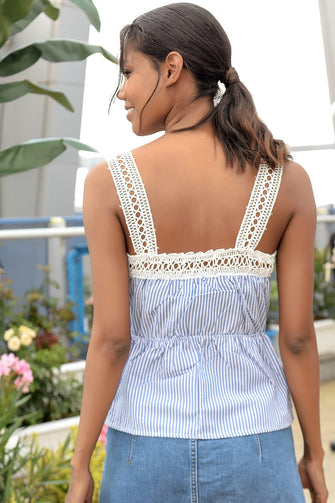 Women Blue Lace Hanging Woven Bluz