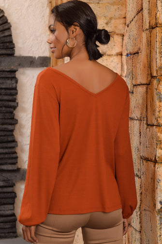 Women Cinnamon Front Back V-Neck Knitwear Blouse