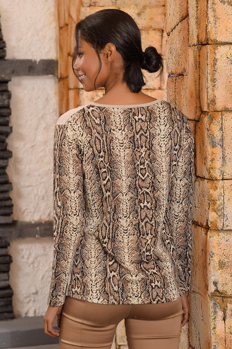 Women Crocodıle Pattern Blocky V Collar Blouse