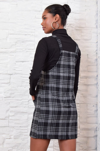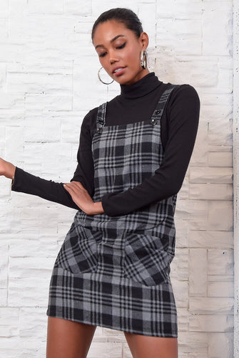 Women Gray Double Pocket Plaid Salopet