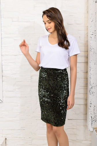 Women Green Sequined Skirt