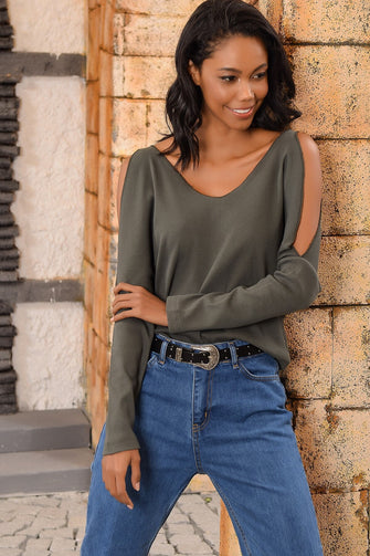 Women Front Back V-Neck Shoulder Low-Cut Blouse