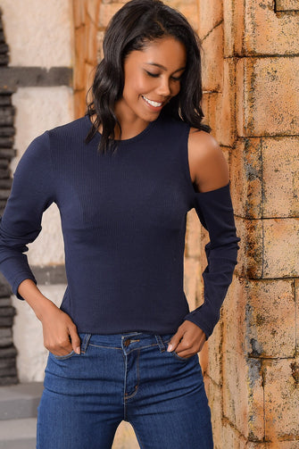 Women Indigo Bike Collar One Shoulder Low-Cut Blouse