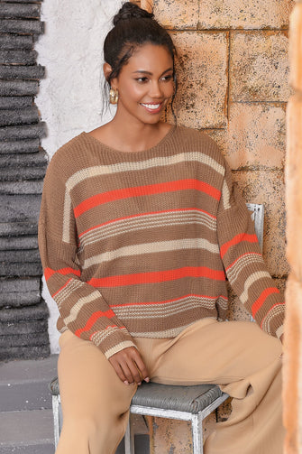 Women Indigo Kayak Collar Striped Sweater