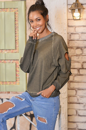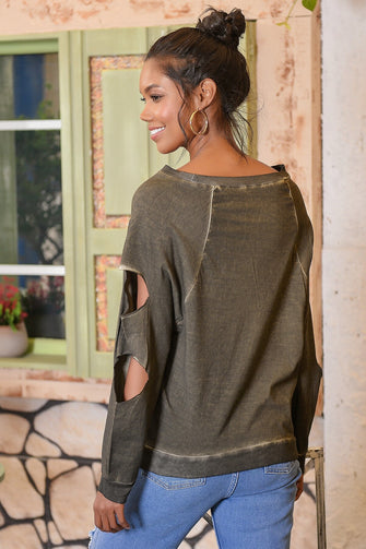 Women Khaki Sleeve Low-Cut Back Flush Sweat