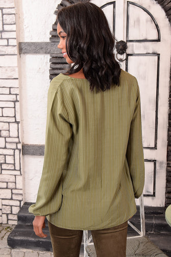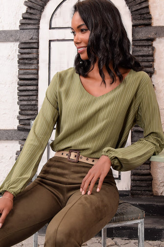 Women Khaki V-Neck Woven Bluz