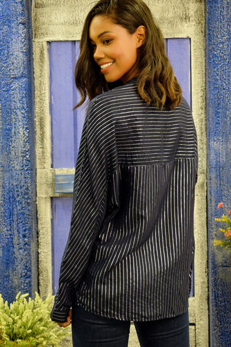 Women Navy Blue Sim Pass Bat Sleeve Shirt