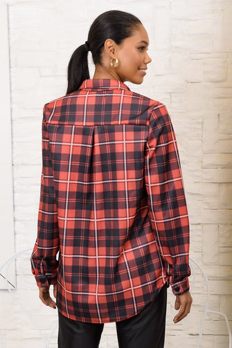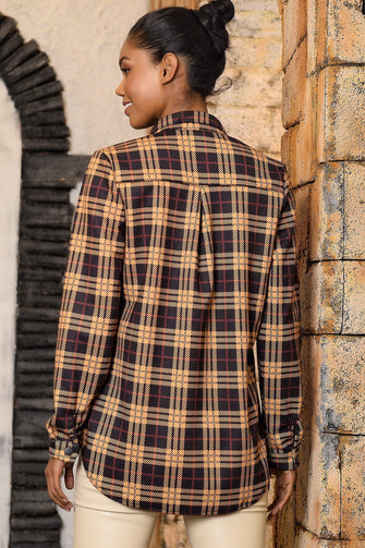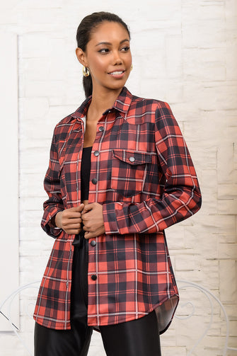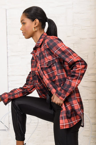 Women Plaid Double Pocket Shirt Jacket