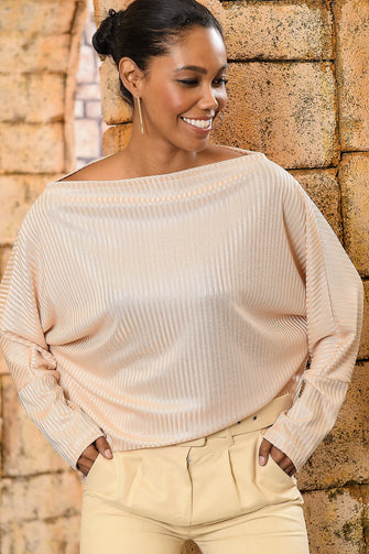 Women 'S Bat Sleeve Shoulder Low-Cut Blouse