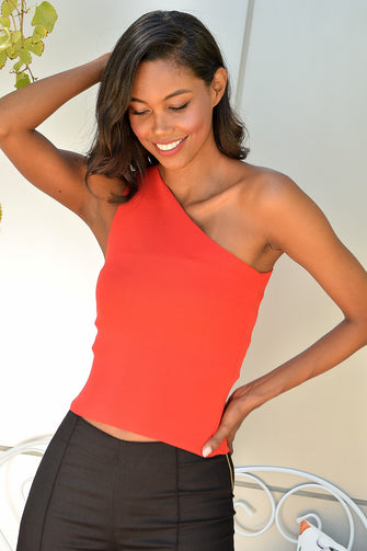 Women 'S Red One Sleeve Slim Pullover Blouse