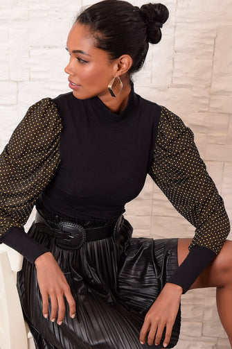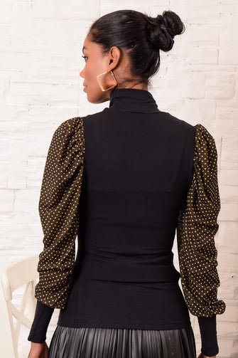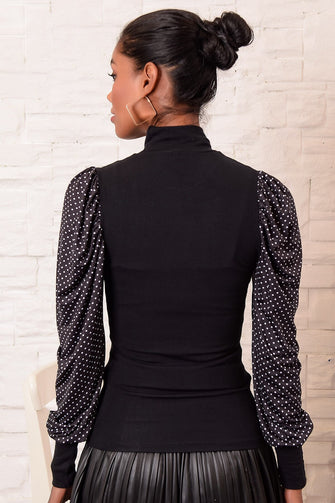 Women Polka Dot Pattern Princess Sleeve Sheer Collar Blouse