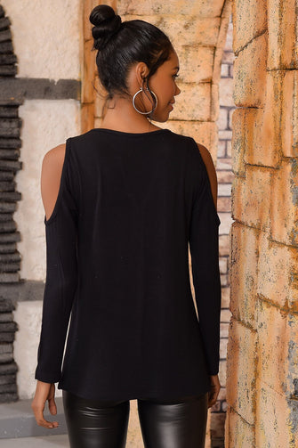 Women SIlver Silver Leafing Shoulder Low-Cut Blouse