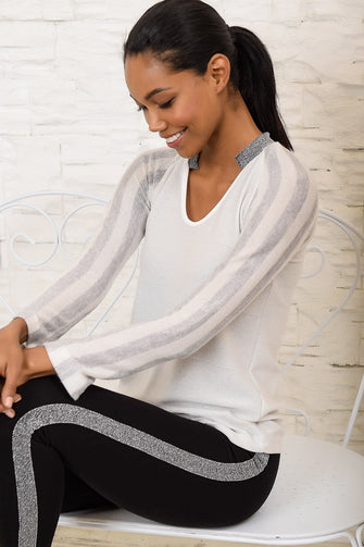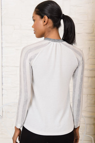 Women Silvery Gray Crew Neck Knitwear Blouse