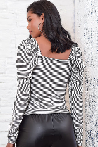 Women Square Collar Balloon Sleeve Knitwear Blouse