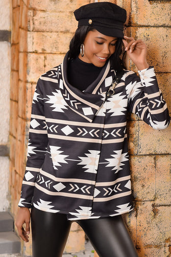 Women Double Breasted Handkerchief Buckled Collar Cardigan
