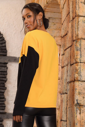 Women Yellow V-Neck Blocky Knitwear Blouse