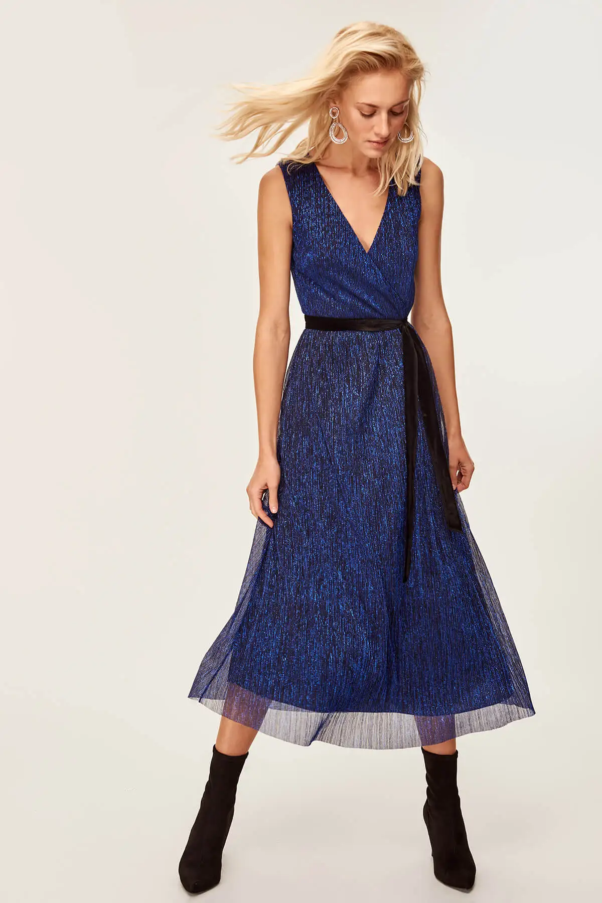 Advanced Luminous Dark Blue Belt Evening Dress