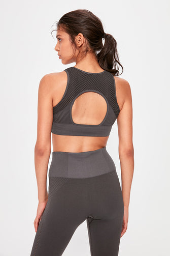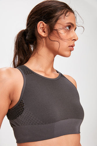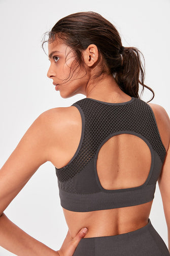 Anthracite Back and Jacquard Detailed Seamless Sport Bra