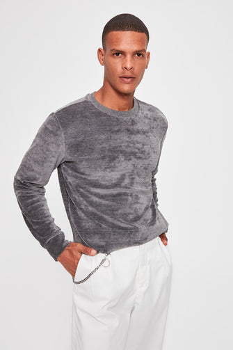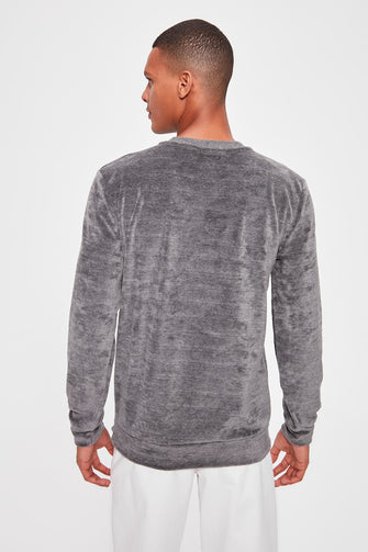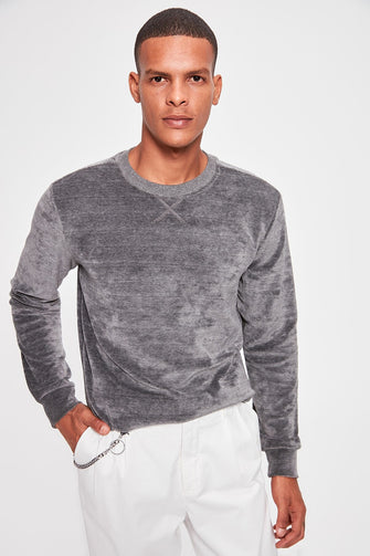 Anthracite Men Bike Collar Long-Sleeved Velvet New Sweatshirt