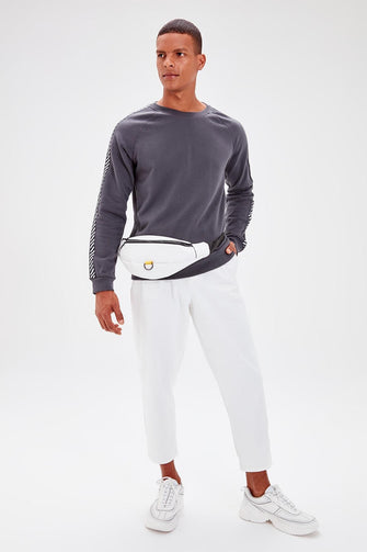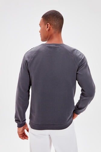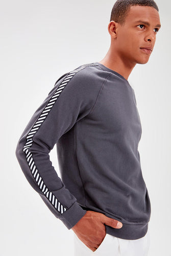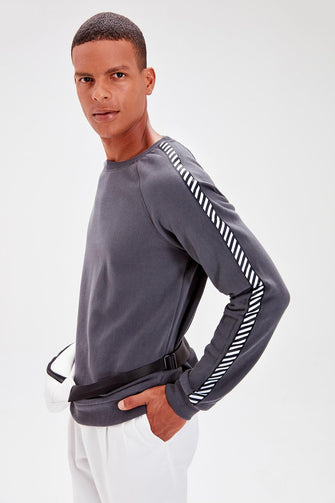 Anthracite Men Long Sleeve Cycling Collar Stripe New Sweatshirt