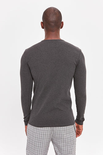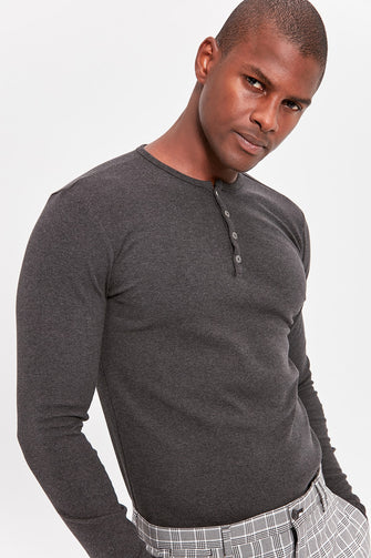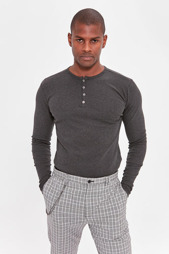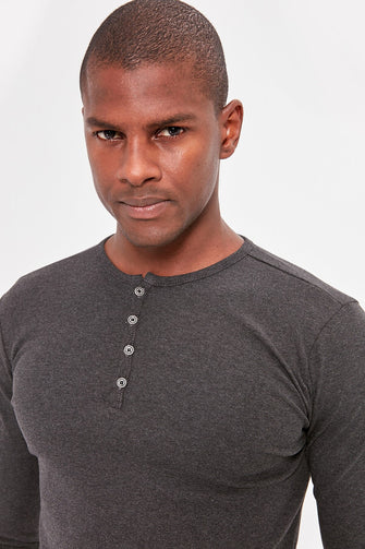 Anthracite Men Long Sleeve Front Button BASIC T-shirt