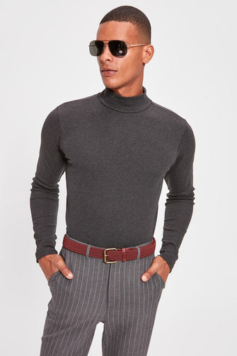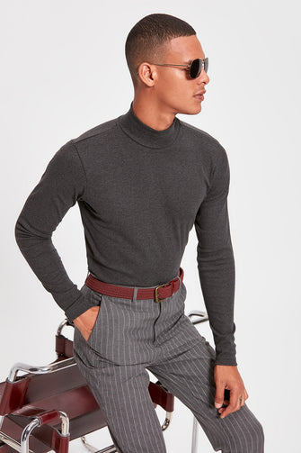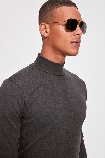 Anthracite Men Long Sleeve Half Turtleneck BASIC New T-shirt