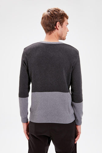 Anthracite Men Panelled Textured Bike Collar Knitwear Sweater New