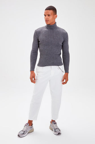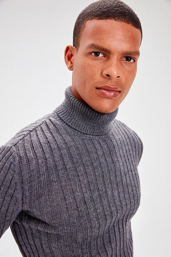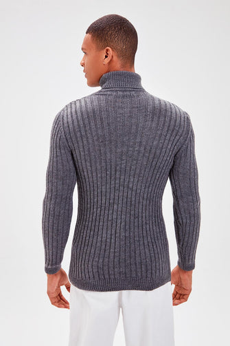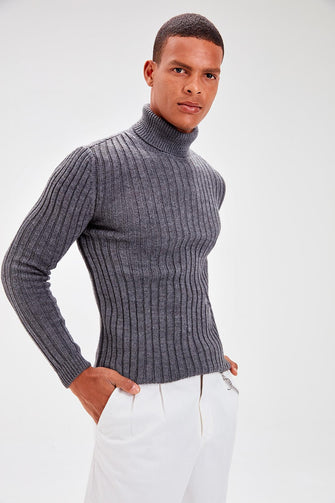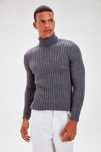 Anthracite Men Rubber Mesh Turtleneck Sweater New