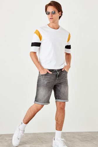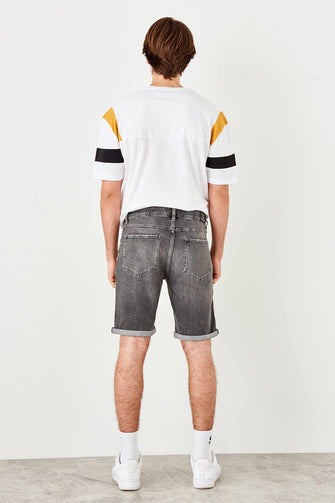 Anthracite Men Slim Fit Curling Trotting Denim Shorts