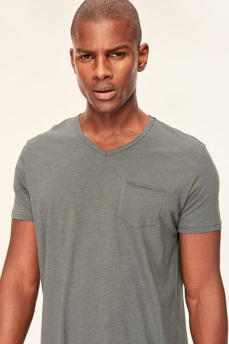 Anthracite Men's T-Shirt Presser - Slim Fit Short Sleeve V Neck Pocket Detail TMNSS19BO0003