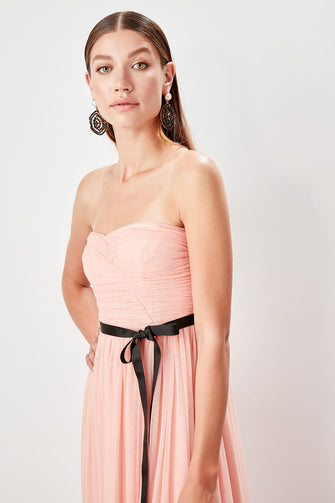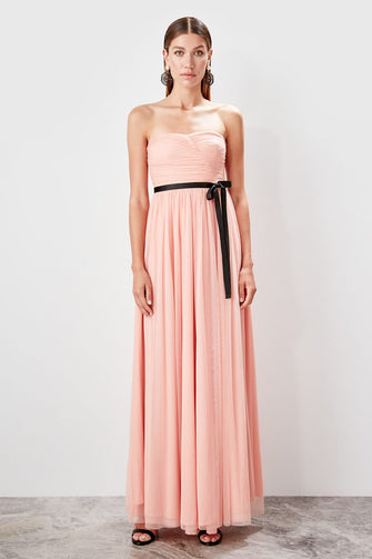Arched Drape Detail Evening Dress