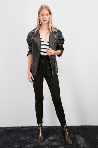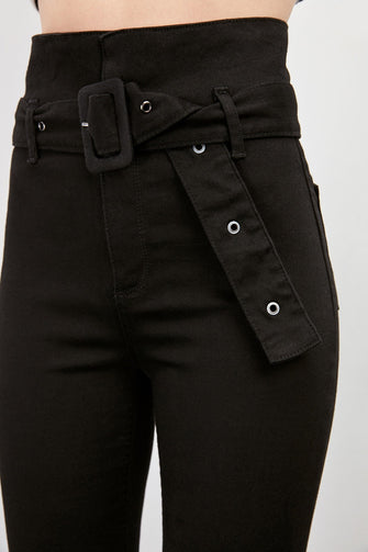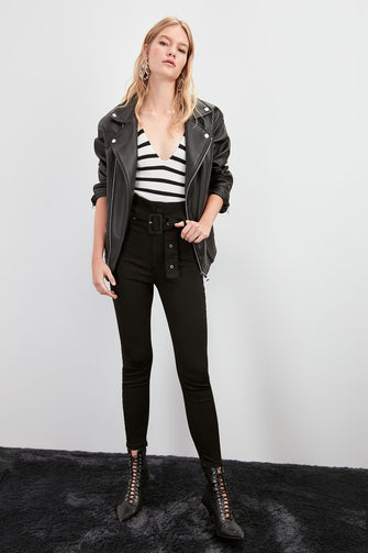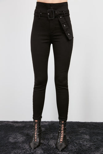 - Button and Zipper Closure, Arched, Super High Waist Jegging